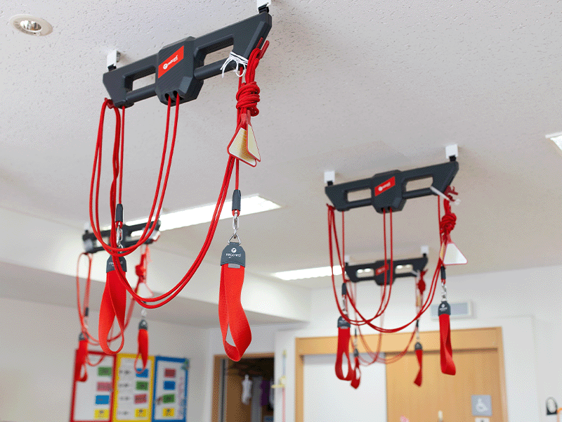 天井から吊るしたロープを使用し、身体を部分的に支持しながら運動をおこなう訓練機器です。関節や筋肉への負担を軽減しつつ、体幹の安定性・筋力・柔軟性を安全に高めることができ、リハビリから運動機能の改善、予防目的まで幅広く活用されます。