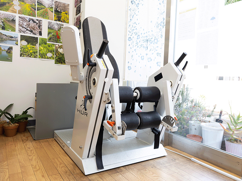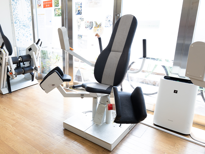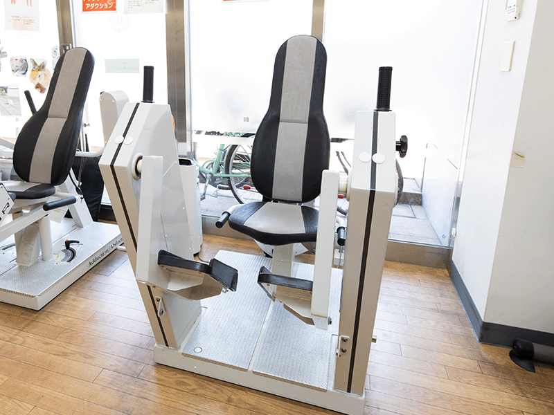 股関節の外転運動(脚を開く)・内転運動(脚を閉じる)をおこなう機器です。内ももや外ももの筋力強化に効果があり、骨盤の安定性や歩行時のバランス向上にも役立ちます。ご高齢の方の転倒予防や骨盤周辺のリハビリにも適しています。