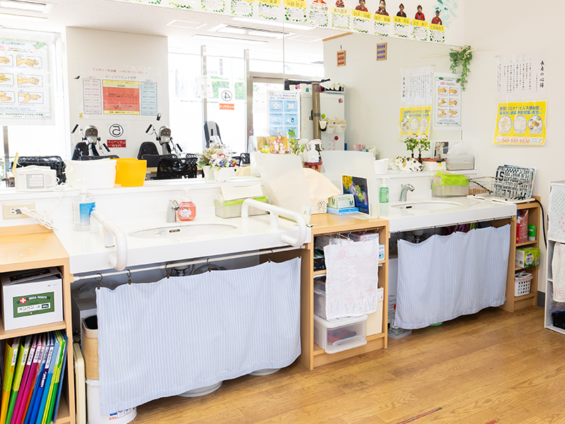 大きな鏡は口腔ケアをおこなう際にもしっかりと確認できます。