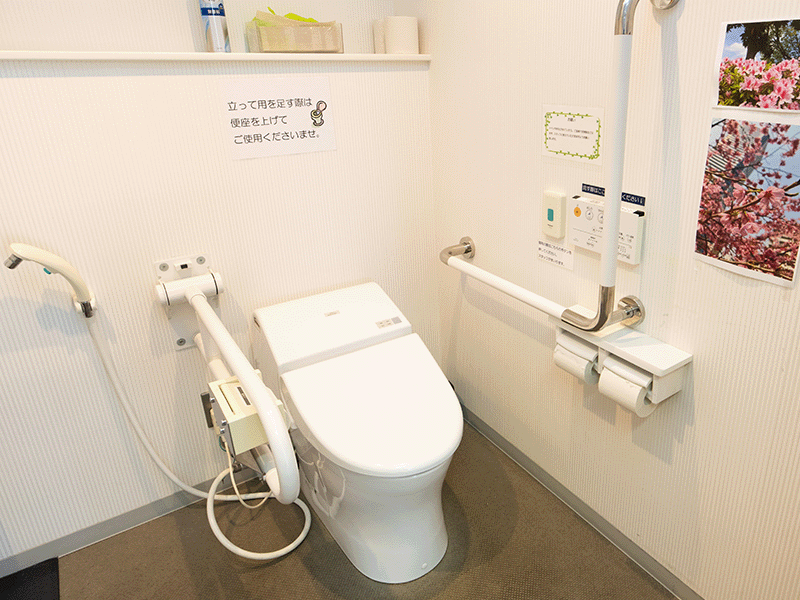 トイレ内には手すりを設置しており、立ち座りや移動の動作をサポートします。足腰に不安のある方やご高齢の方も安心して利用できます。