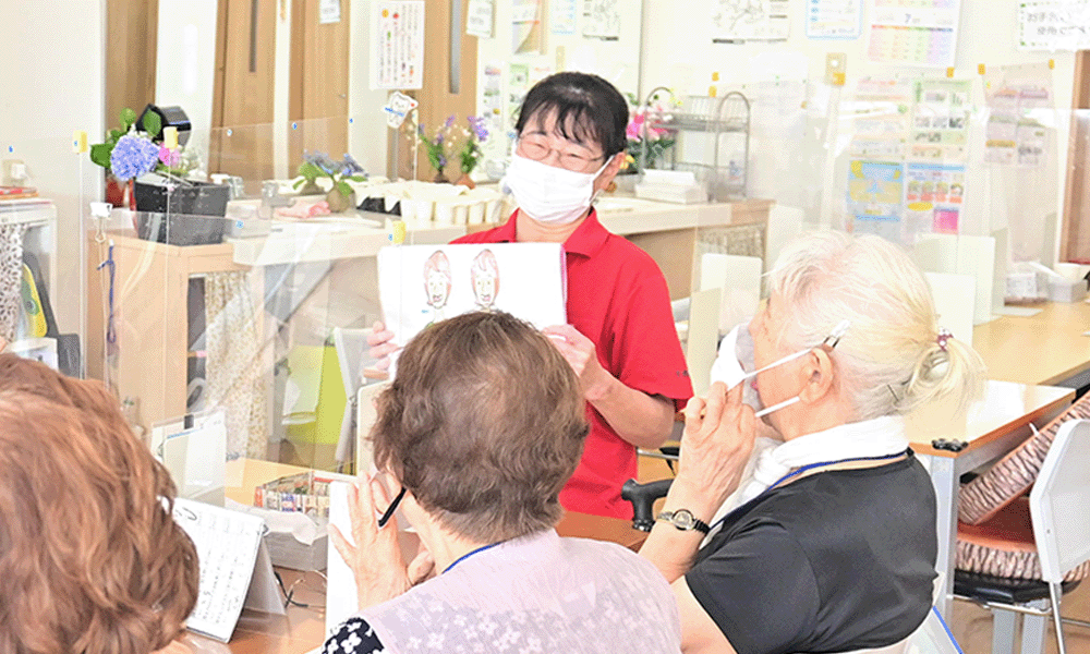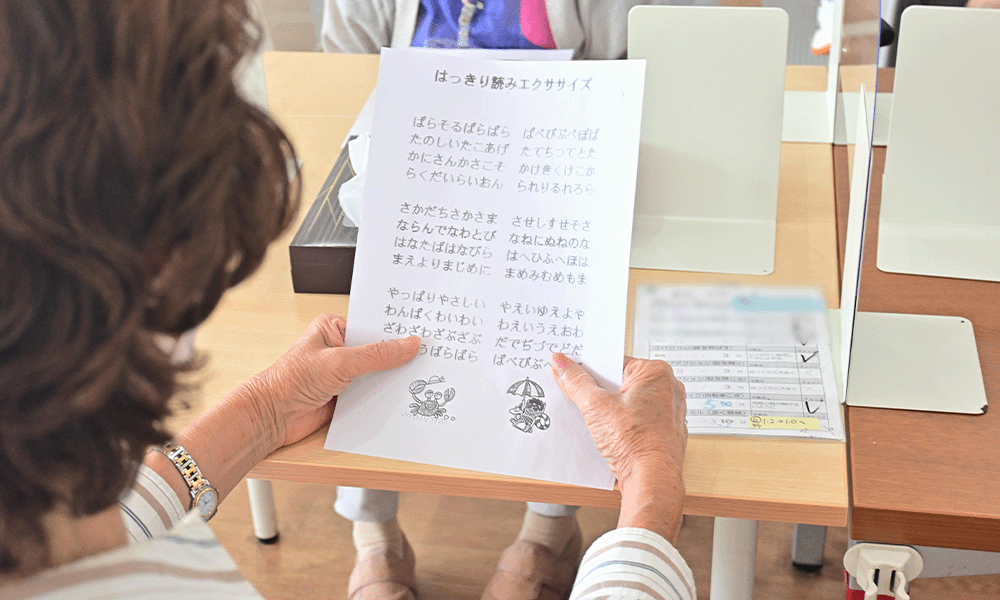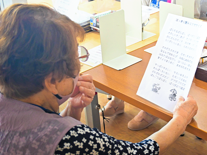 スタッフが作成した替え歌を口腔リハビリをおこなう際に合唱しています。