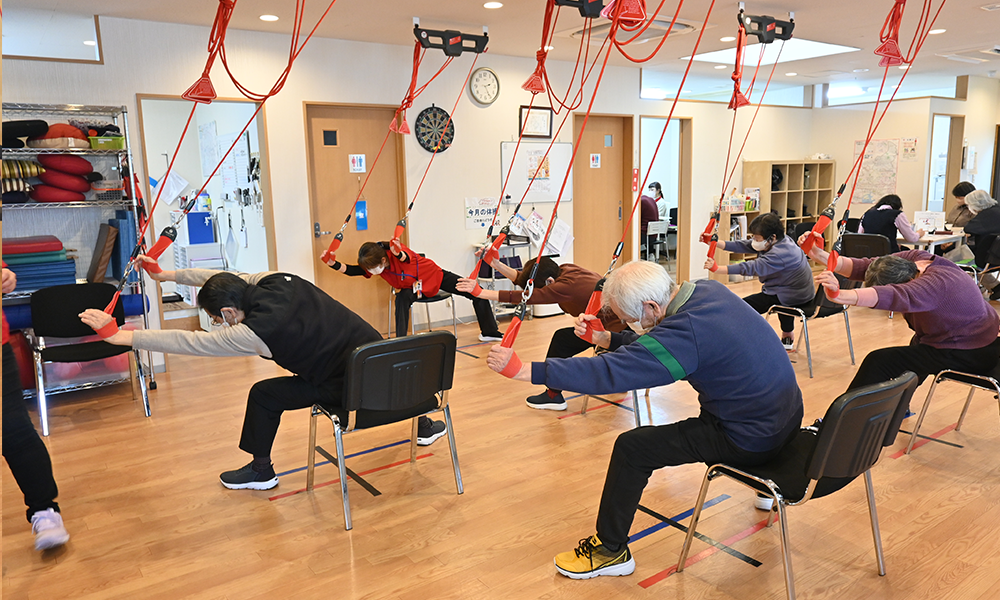 当センターでは、レッドコードトレーニングやマシントレーニングを用いて、筋力や柔軟性、バランス能力の向上や、日常生活動作の維持・改善を目指します。